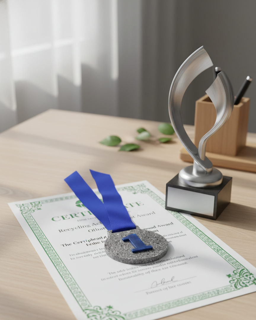 SparkLiv’s upcycled achievement medal is more than an award — it’s a statement. Handmade from household plastic waste, each medal transforms discarded material into a symbol of progress, purpose, and pride. Designed for schools, communities, corporates, and sports events, it celebrates achievement while championing sustainability.